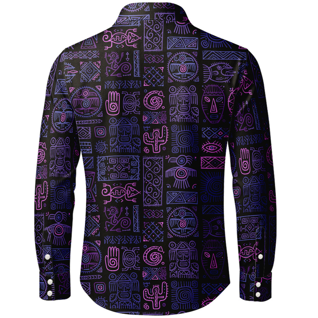 Detaljer: Klassisk krave, fuld knaplukning, manchetter med knapper og let afrundet kant forneden