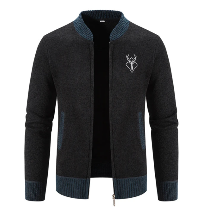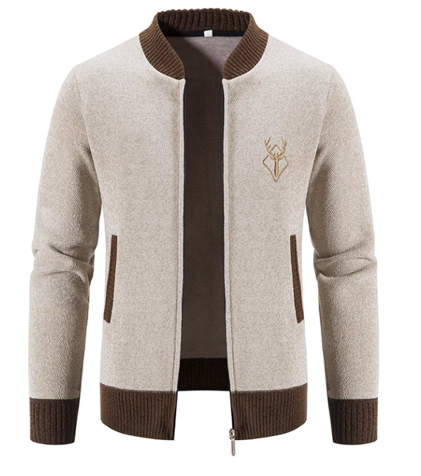 Det subtile efterårssymbol med et hjortemotiv på brystet tilføjer et sofistikeret, sæsonpræget touch — et symbol på stil, natur og styrke.